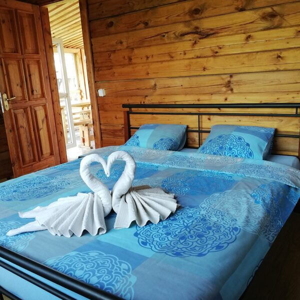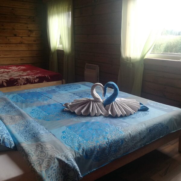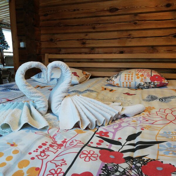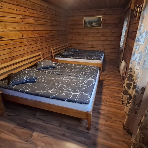 - Namelyje yra vienas keturvietis miegamasis. Jei kompanija didesnė (nuo 5 iki 24 asmenų), suteikiame papildomas miegamąsias vietas nakvynės name.