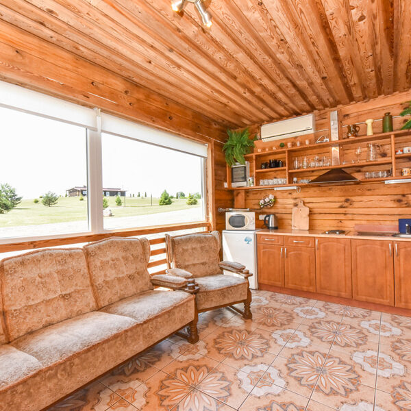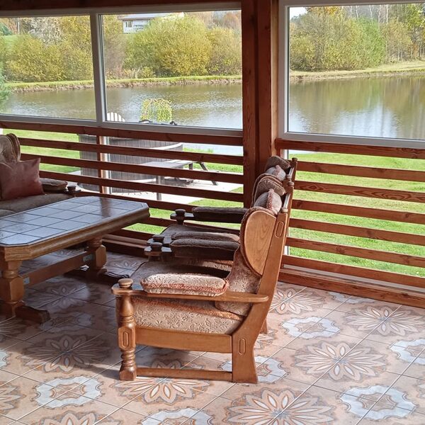Čia Jūsų lauks galimybė pailsėti jaukiame namelyje su panoraminiais langais prie pat didelio tvenkinio. Galėsite mėgautis gamtos vaizdais neišeinant iš namelio. O esant gražiam orui galėsite smagiai praleisti laiką išpuoselėtoje sodybos teritorijoje.