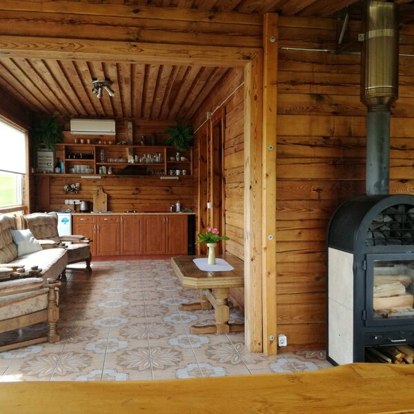 - Vienas iš dviejų pirties namelių sodyboje. Dažniausiai jį pasiūlome šeimoms, nedidelėms kompanijoms iki 14 asmenų. Tačiau gali būti ir didesnė kompanija.
