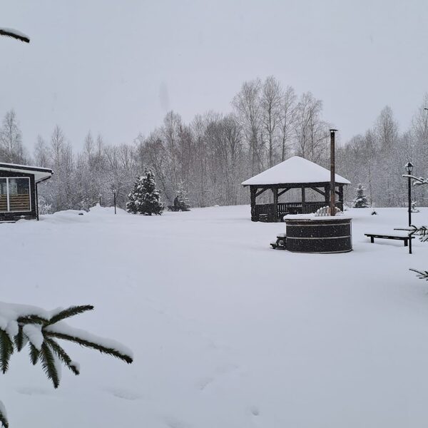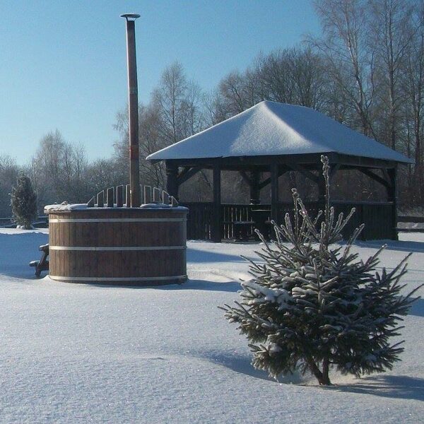 - Šalia namelio prie pat tvenkinio kranto įrengtas didelis lauko kubilas.