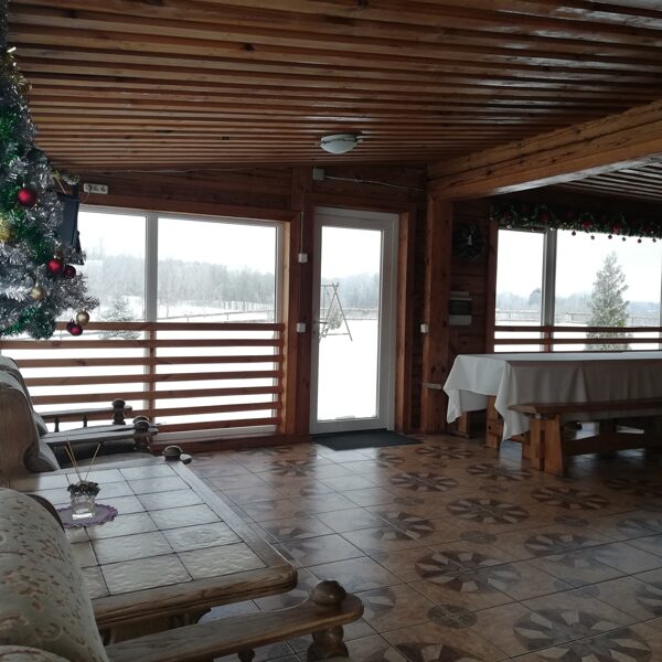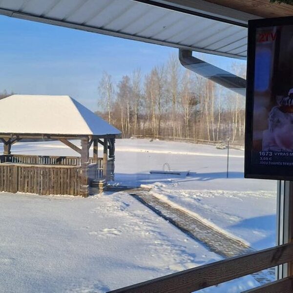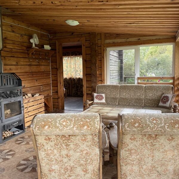 Čia Jūsų lauks galimybė pailsėti jaukiame namelyje su panoraminiais langais prie pat didelio tvenkinio. Galėsite mėgautis gamtos vaizdais neišeinant iš namelio. O esant gražiam orui galėsite smagiai praleisti laiką išpuoselėtoje sodybos teritorijoje.